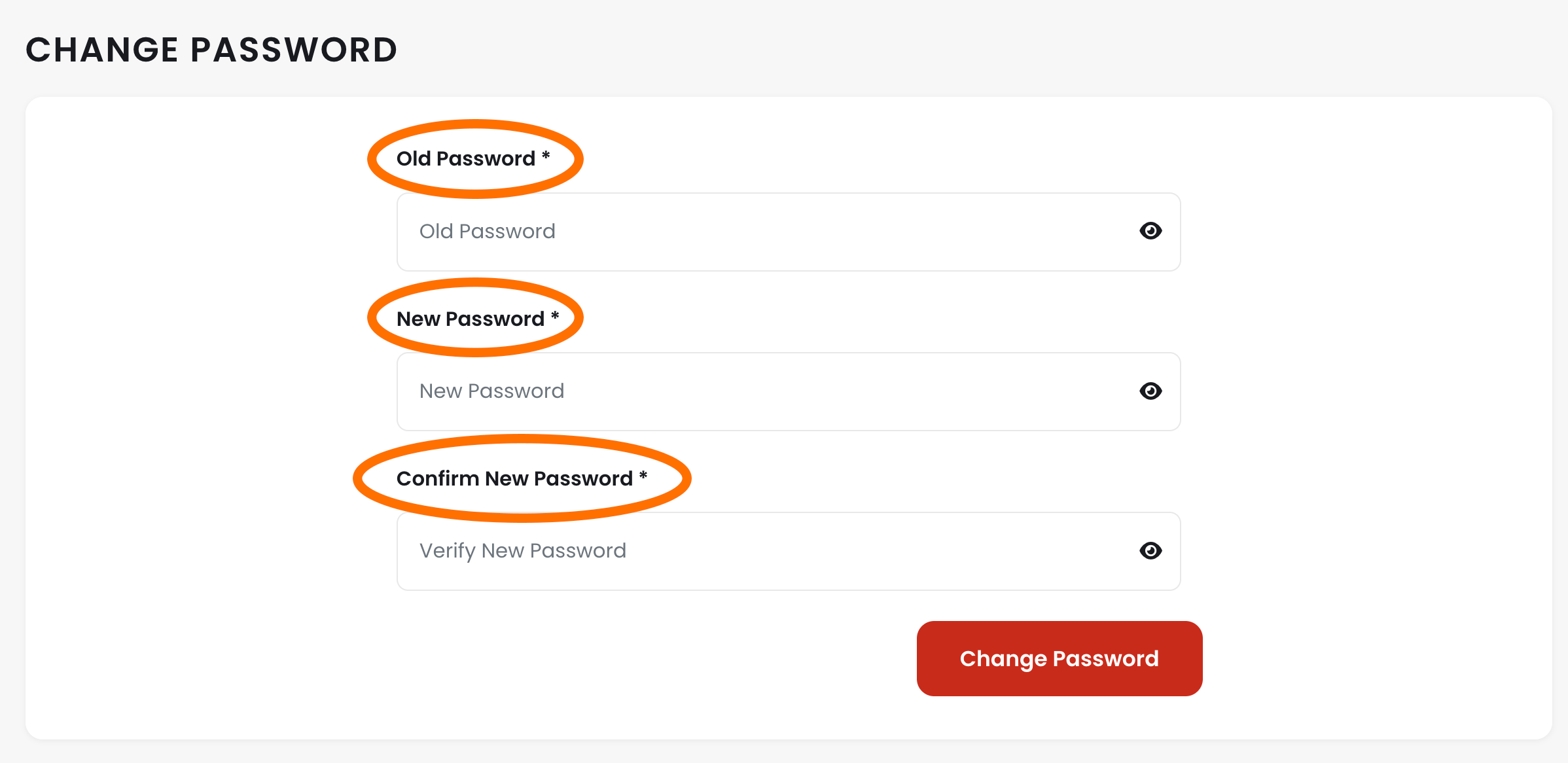 Fill out the “Old Password” and “New Password” boxes. When done, make sure to also fill in the “Confirm New Password” box to verify it before clicking the “Change Password” button.