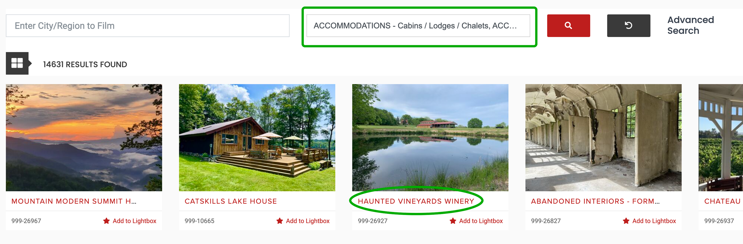 Now it’s up to you to browse through each listing to find that perfect film location for your production. In the example below, let’s check out the Haunted Vineyards Winery listing. That sounds quite interesting as a horror/suspense film setting.